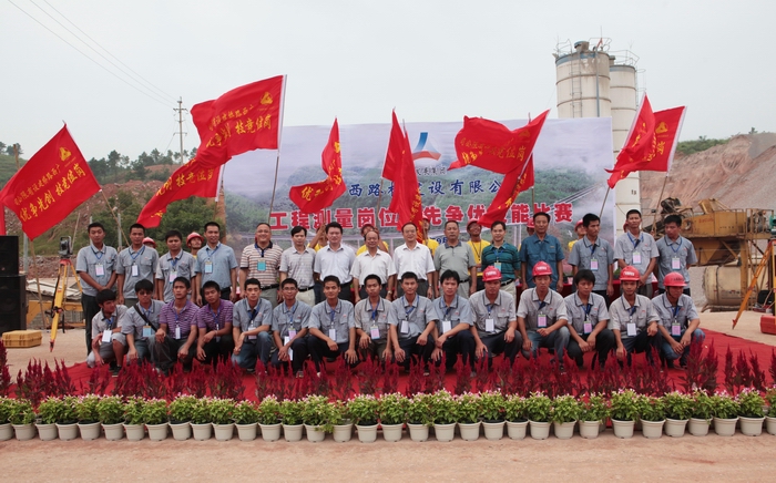 9月2日,廣西路橋建設(shè)有限公司在六欽1標(biāo)舉辦工程測量崗位創(chuàng)先爭優(yōu)技能比賽。廣西交通工會、海員工會主席黎建華,自治區(qū)交通運(yùn)輸廳直屬機(jī)關(guān)黨委專職副書記羅華芝,集團(tuán),公司黨委副書記張友坐等領(lǐng)導(dǎo)出席比賽開幕儀式并講話。