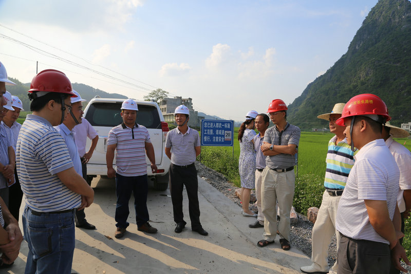 9月10日至11日,集團公司董事長朱堅和、總經理李定倫、副總經理劉明洪等領導深入都安至武鳴公路、大化至巴馬公路建設一線,全面檢查項目年底通車建設進展情況。集團公司投資發展部、企業部負責人,路橋建設公司趙亞飛董事長、翔路公司羅光董事長等領導人員陪同檢查。