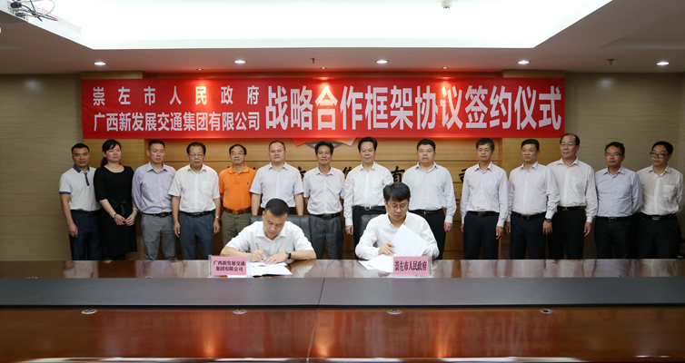 劉有明指出,崇左市區域優勢明顯,交通物流、旅游產業等快速發展,在我區對外開放大格局中具有重要地位和突出作用。而新發展交通集團是一家實力雄厚、專業領域齊全、產業鏈完整的大型國有企業,“十三五”期間乃至更長一個時期,雙方合作的前景非常廣闊。雙方要建立緊密、高效、務實的合作機制,加快推動落實大新(德天)至寧明(花山)公路、渠黎至渠舊公路等一批重點項目,為崇左壯鄉人民帶來紅利、帶來收獲感,最終實現雙方的共贏。