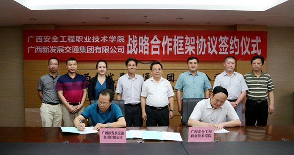 黎志逘祝賀雙方正式建立戰(zhàn)略合作伙伴關(guān)系。他說,廣西安全工程職業(yè)技術(shù)學(xué)院是經(jīng)廣西壯族自治區(qū)人民政府批準(zhǔn)成立、教育部備案的公辦全日制普通高等職業(yè)學(xué)院,隸屬廣西壯族自治區(qū)安全生產(chǎn)監(jiān)督管理局管理,是廣西唯一一所、全國第三所專門培養(yǎng)安全類高等專業(yè)技術(shù)人才的現(xiàn)代化職業(yè)學(xué)院。為了深入貫徹黨的十八屆六中全會和習(xí)近平總書記、李克強總理關(guān)于安全生產(chǎn)工作的重要指示批示精神,推動企業(yè)落實安全生產(chǎn)主體責(zé)任,在全社會凝聚弘揚安全發(fā)展理念、支持安全生產(chǎn)的共識,“十三五”期間乃至更長一個時期,雙方將建立互信、互補、互援的戰(zhàn)略合作關(guān)系,開啟校企全面深入合作的新篇章。通過深入合作交流,促進了廣西安全工程職業(yè)技術(shù)學(xué)院發(fā)展,提升了廣西新發(fā)展交通集團有限公司在安全生產(chǎn)方面的實力,最終實現(xiàn)雙方的共贏。
