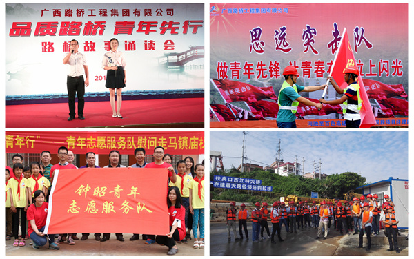 廣西路橋集團團委于5月27日,舉辦“品質路橋青年先行”主題團日活動,通過舉行品牌青年突擊隊授旗及突擊隊長代表宣誓儀式,進一步發揮青年員工的先鋒模范作用;通過舉辦路橋故事誦讀會,講述路橋青年在打造品質工程、塑造品質管理、傳承品質文化過程中發生的路橋故事,通過藝術創作,訴說青年人的生活感悟,誦揚身邊的青年人先進事跡。同時組織開展了青年志愿服務、青年質量安全示范崗、“團員身邊無事故”、“安全隱患大排查”、“路橋青年每月讀好書”等活動,引導青年員工立足崗位,努力實現自身素質和管理水平的雙提升,做好黨的助手,發揮青年生力軍作用。