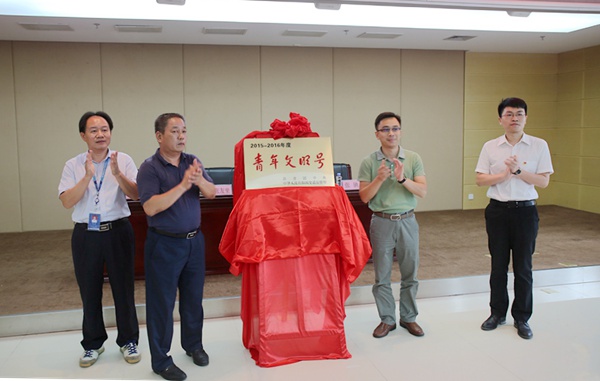隨后,交通運輸廳團委阮夏恒書記宣讀共青團中央聯合其他21個部委下文的《關于命名2015—2016年度全國“青年文明號”的決定》。宣讀完畢后,團區委青年發展部部長助理張弛、交通廳團委書記阮夏恒、集團公司黨委副書記張友坐、設計院公司黨委書記周錚共同為“青年文明號”揭牌。