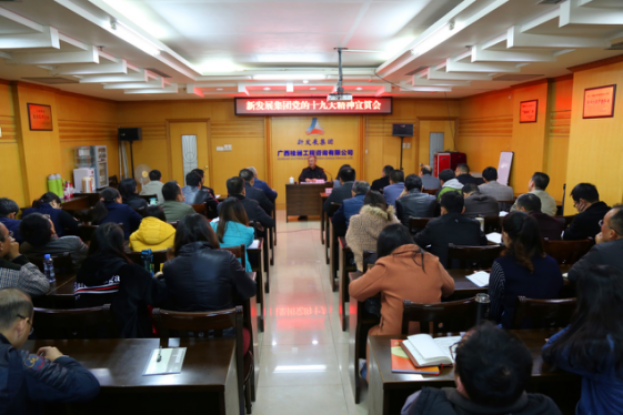 為使黨的十九大精神深入基層、深入人心,11月27日,集團(tuán)公司紀(jì)委書記翁科到桂通公司宣講黨的十九大精神。桂通公司總部全體人員、分公司、南寧周邊項目員工參加學(xué)習(xí)。