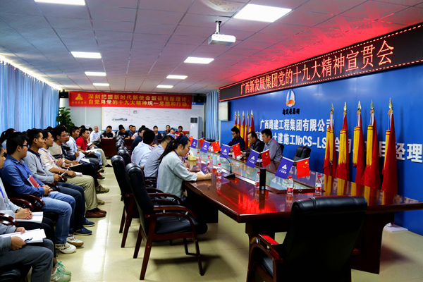 宣貫會上,覃炳賢圍繞深刻學習領會黨的十九大精神;以黨的十九大精神為指導,奮力開創企業改革發展新局面;加強組織領導,迅速掀起學習宣傳貫徹黨的十九大精神熱潮等三個方面的內容展開宣講。