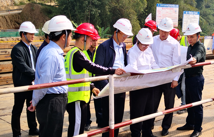 李定倫一行到紅水河特大橋一線施工現場與建設人員深入溝通交流,詳細了解項目進展情況,聽取當前項目建設存在的重點難點,對項目建設的總體規劃和方案提出意見,并要求指揮部和各參建單位齊心協力、科學謀劃布局,認真研究可行性方案,落實建設責任,嚴把質量安全關,確保紅水河特大橋項目建設高效、扎實、快速推進。