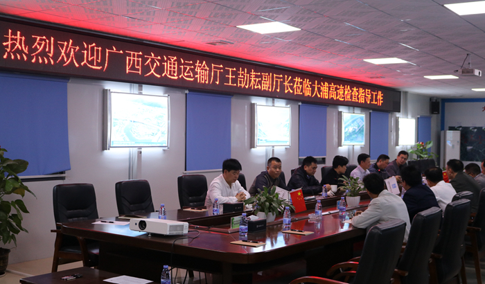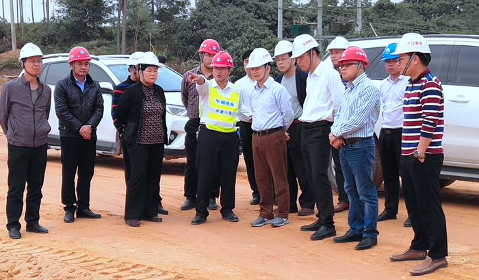 12月23日下午,區(qū)交通運輸廳副廳長王劼耘一行到大塘至浦北高速公路項目開展項目建設檢查指導。自治區(qū)交通運輸廳建設管理處副處長余建國、北投集團總工程師覃炳賢、欽州市交通局局長鄒滿麗、靈山縣副縣長陸漢川、新發(fā)展集團總經(jīng)理藍日彥、大浦公司副總經(jīng)理姚雷、中建八局南方公司總經(jīng)理助理龍永強等陪同。